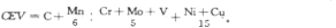 根據(jù)需要,可用焊接裂紋敏感性指數(shù)P□代替碳當(dāng)量,其值由供需雙方協(xié)議確定。焊接裂紋敏感性指數(shù)計算公式 :
